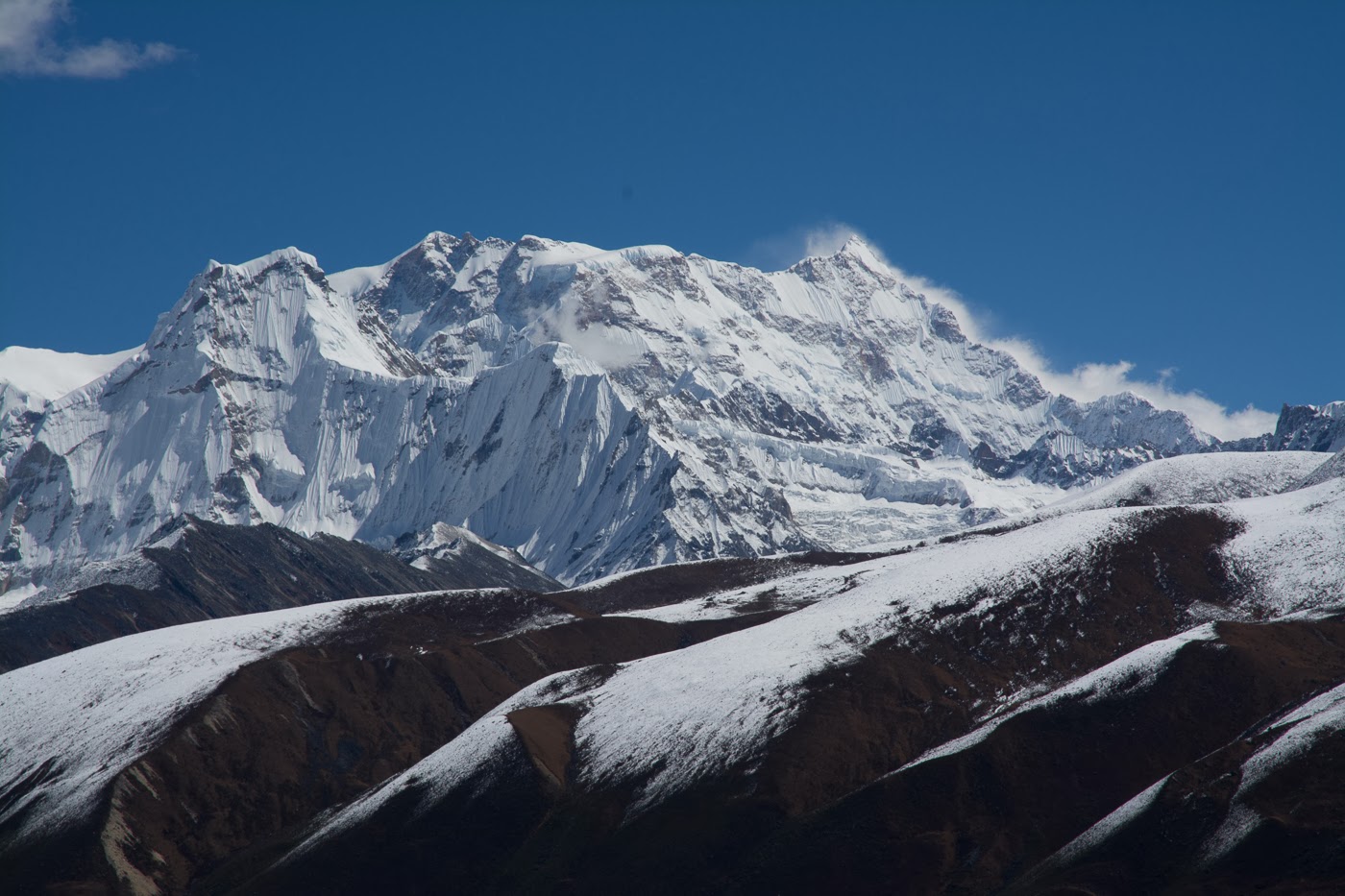 Our prayers were answered when we awoke to clear skies the next morning. French Pass here we come! Our route climbed 2000 feet along the edge of a gradual ridge with spectacular views of the north face of Dhaulagiri towering 11,000 feet above us as we looked back.